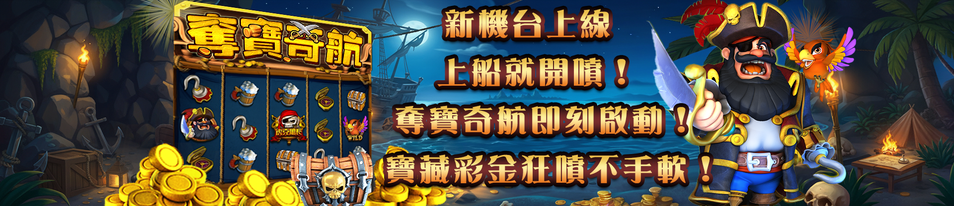 奪寶奇航是一款以海盜船長為主軸的老虎機遊戲,海盜船長已就位,黃金寶藏等你來拿,快來挑戰你的大航海夢!