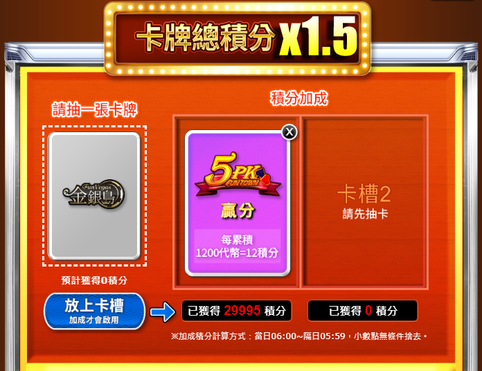 2.活動期間內在金銀豪彩內卡牌可獲得加成積分 x1.5倍